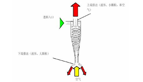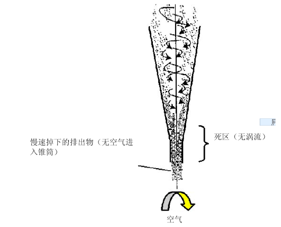 (1)工作原理:含有懸浮固相顆粒的鉆井液,在壓力作用下,以很高的速度由進(jìn)液口進(jìn)入圓柱蝸殼(旋流室內(nèi))。高速旋轉(zhuǎn)的鉆井液,繞錐筒中心旋轉(zhuǎn)產(chǎn)生極大的離心力,并向圓錐筒底部移動(dòng)。由于鉆井液中的液體與固體存在著密度差,使固相分離出來面近靠錐壁。旋流器的錐筒越向底部半徑越小,鉆井液獲得的角速度越大,從而產(chǎn)生更大的離心力。鉆井液在錐體頂部不但繞中心高速旋轉(zhuǎn),而且產(chǎn)生一個(gè)反向旋渦,經(jīng)垂直導(dǎo)流管(中心管)而離開錐筒。鉆井液和鉆井液中的固相顆粒的運(yùn)移速度幾乎相同,這些固相顆粒小半徑處,受到極大的徑向加速度。在徑向加速度(離心力)的作用下,迫使固相顆粒向錐筒壁運(yùn)移。同時(shí),由于旋轉(zhuǎn)下行的固相顆粒慣性很大,將推著它向底部快速運(yùn)動(dòng),因此當(dāng)液體反向旋轉(zhuǎn),向上由溢流排除時(shí),這些已分離出來的固相顆粒不可能隨溢流返回,而是由底流口(排砂口)排出。