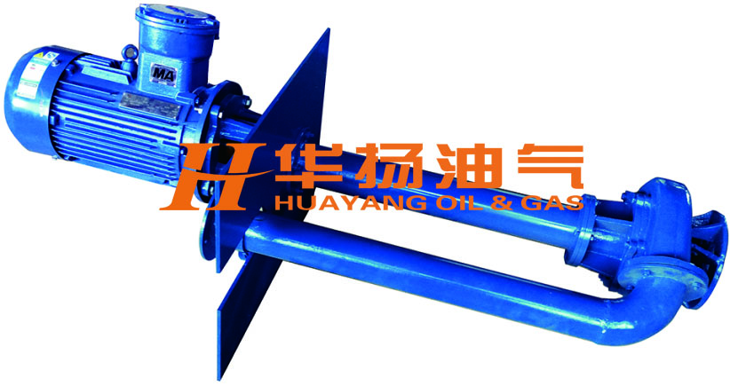 HYYZ series slurry pump mainly supply mud for Shale Shaker and centrifuges from the mud pit. The structure ofHYYZ series slurry pump is single level, single sucking Cantilever type, using bearing seat, supports seat, connecting pipe to connect the pump hydraulic parts of pump, Liquid discharged by the hydraulic hose assembly, pump’s impeller is Semi-open impeller, In the impeller import stretch equipped with mixing blades, the pump’s main features is submerged parts of the shaft, has enough of stiffness, between the impeller and pump shell did not set bearing, shaft seals, can conveying the medium contains larger concentration solid particles. The standard length of Pump Insert liquid is1.3 meters, and can be equipped with a suction tube if required. Shaft seals adopts the running of Insert pump into liquid, without shaft seal, transmission by vertical motor mounted on the motor bearing block, connected by coupling with the pump.